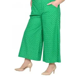 Брюки укороченные, расклешенные из ткани батист с шитьем