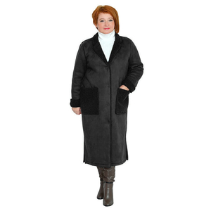 Дубленка длинная с разрезами по бокам из искусственной двухсторонней замши