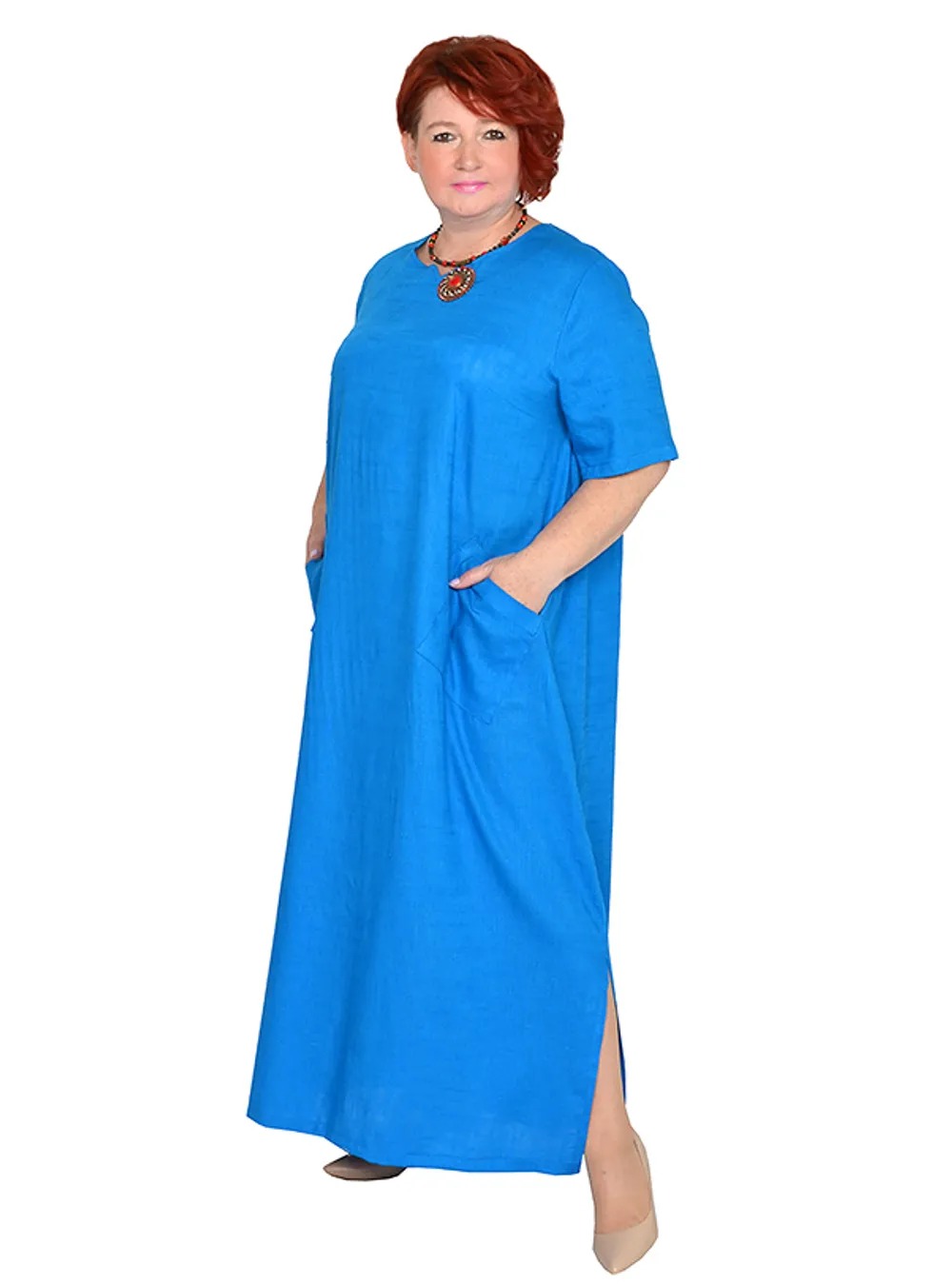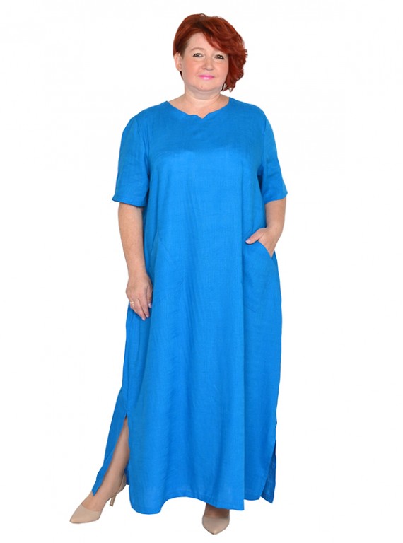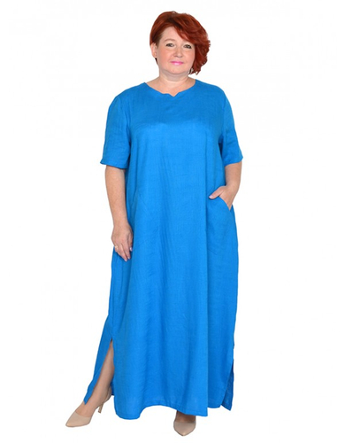 > Платье силуэт трапеция с разрезами по боковому шву синие размеры 50-84