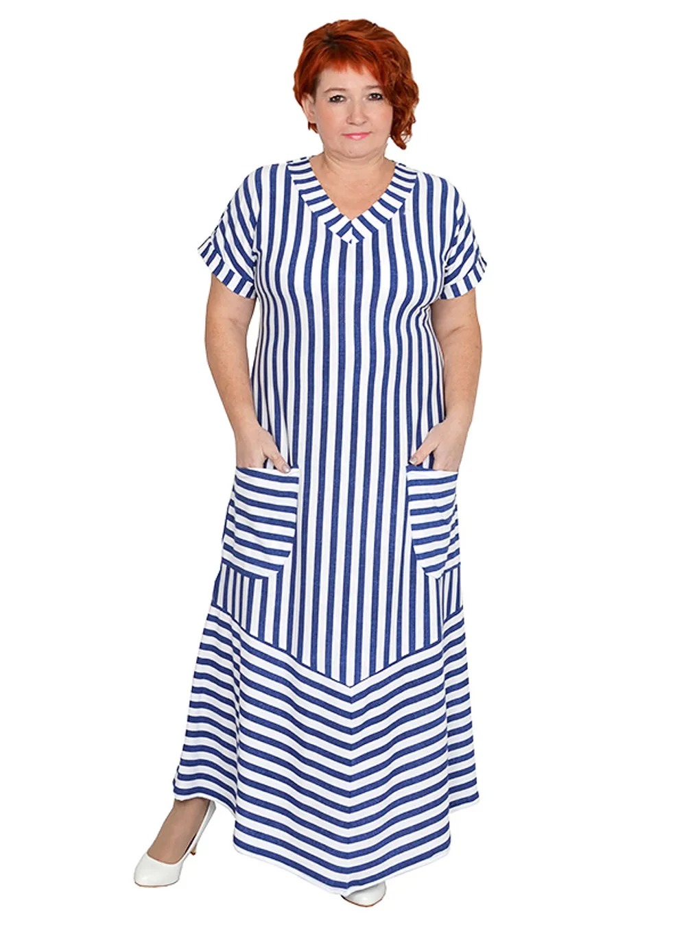 Платье с карманами с V образным вырезом из вискозы размеры 50-84