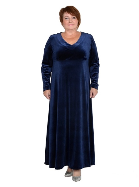 > Платье из велюра вырез v образный от груди расклешенное размеры 50-84