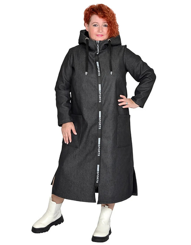 Пальто из джинсовой ткани черное утепленное на флисе размеры 50-84