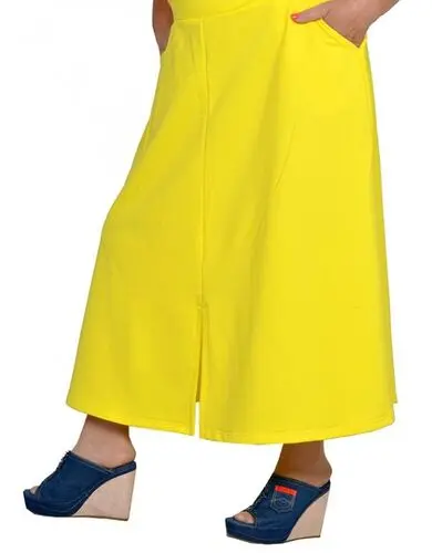 > Юбка из трикотажа футер желтая с карманами с разрезом по переду размеры 50-84