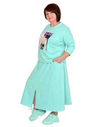 > Юбка из трикотажа футер ментол с карманами с разрезом по переду размеры 50-84