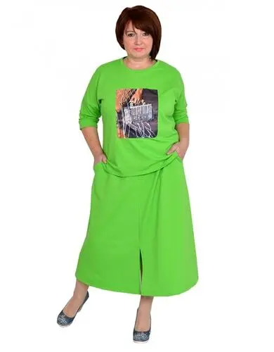 > Юбка из трикотажа футер зеленая с карманами с разрезом по переду размеры 50-84