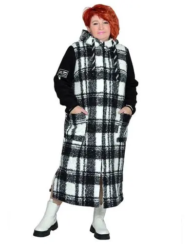> Пальто в клетку с разрезами из ткани барашек размеры 50-84