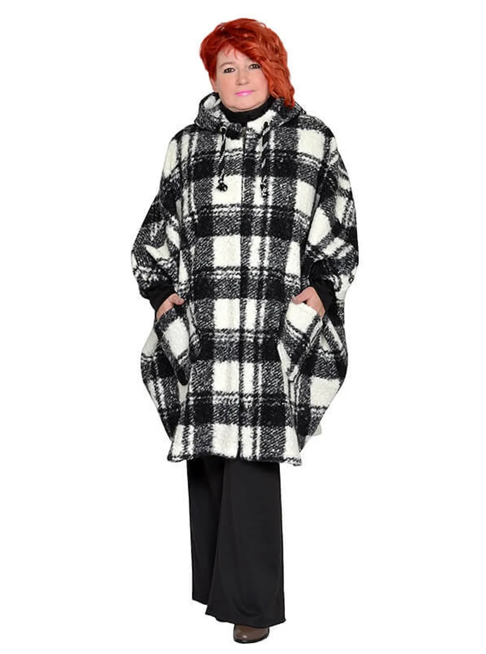 Пончо в клетку с разрезами из ткани барашек размеры 50-84