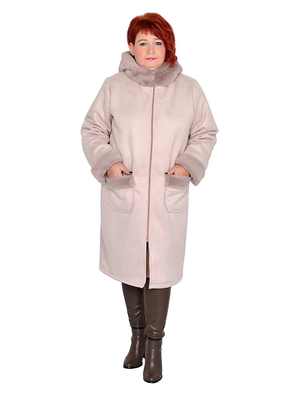 > Дубленка зимняя из искусственной двухсторонней замши роза размеры 50-84