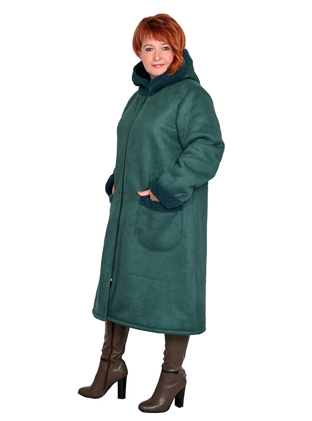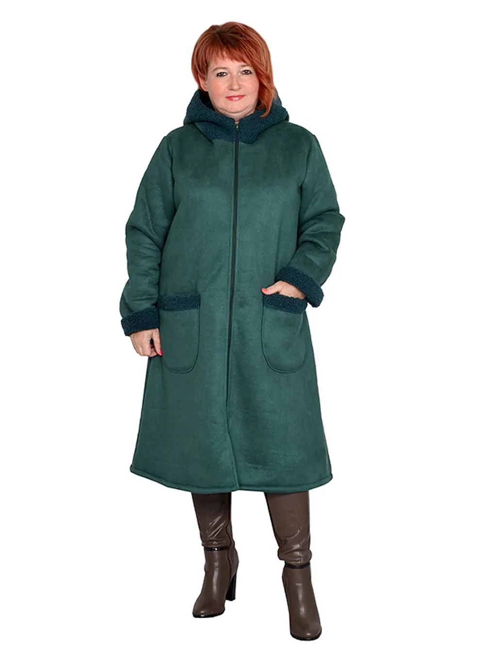Дубленка-пальто из искусственной двухсторонней замши зеленый размеры 50-84