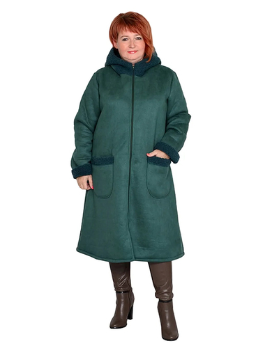 > Дубленка-пальто из искусственной двухсторонней замши зеленый размеры 50-84
