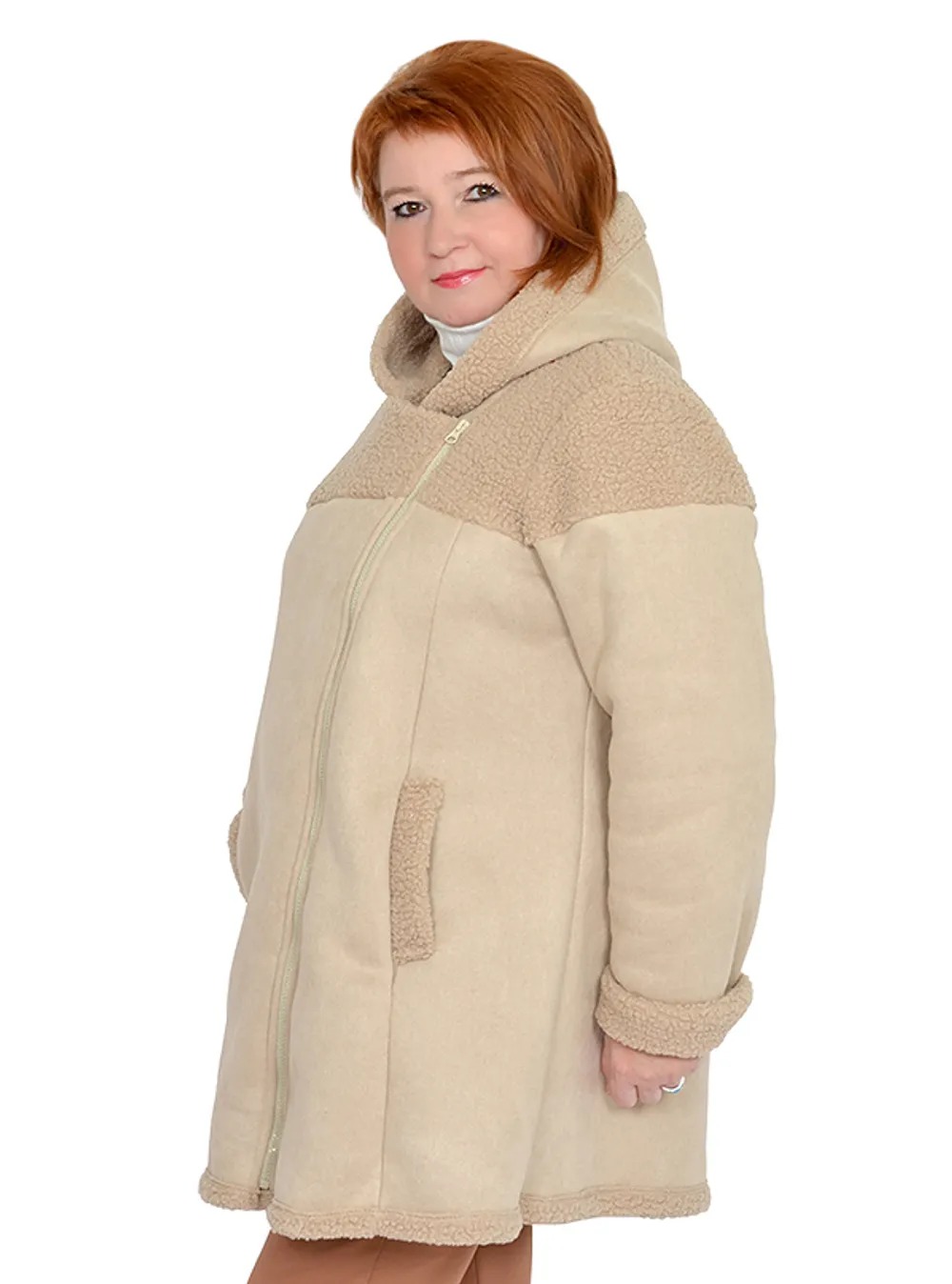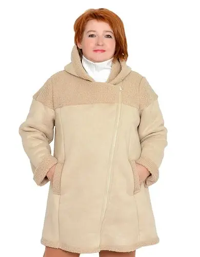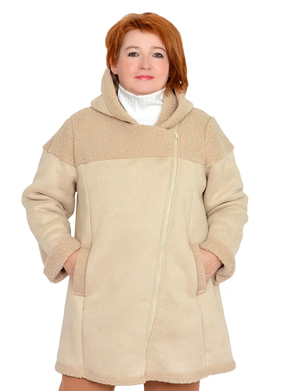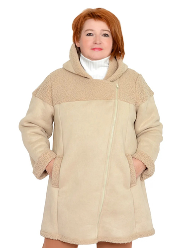> Куртка-дубленка из искусственной двухсторонней замши бежевая размеры 50-84