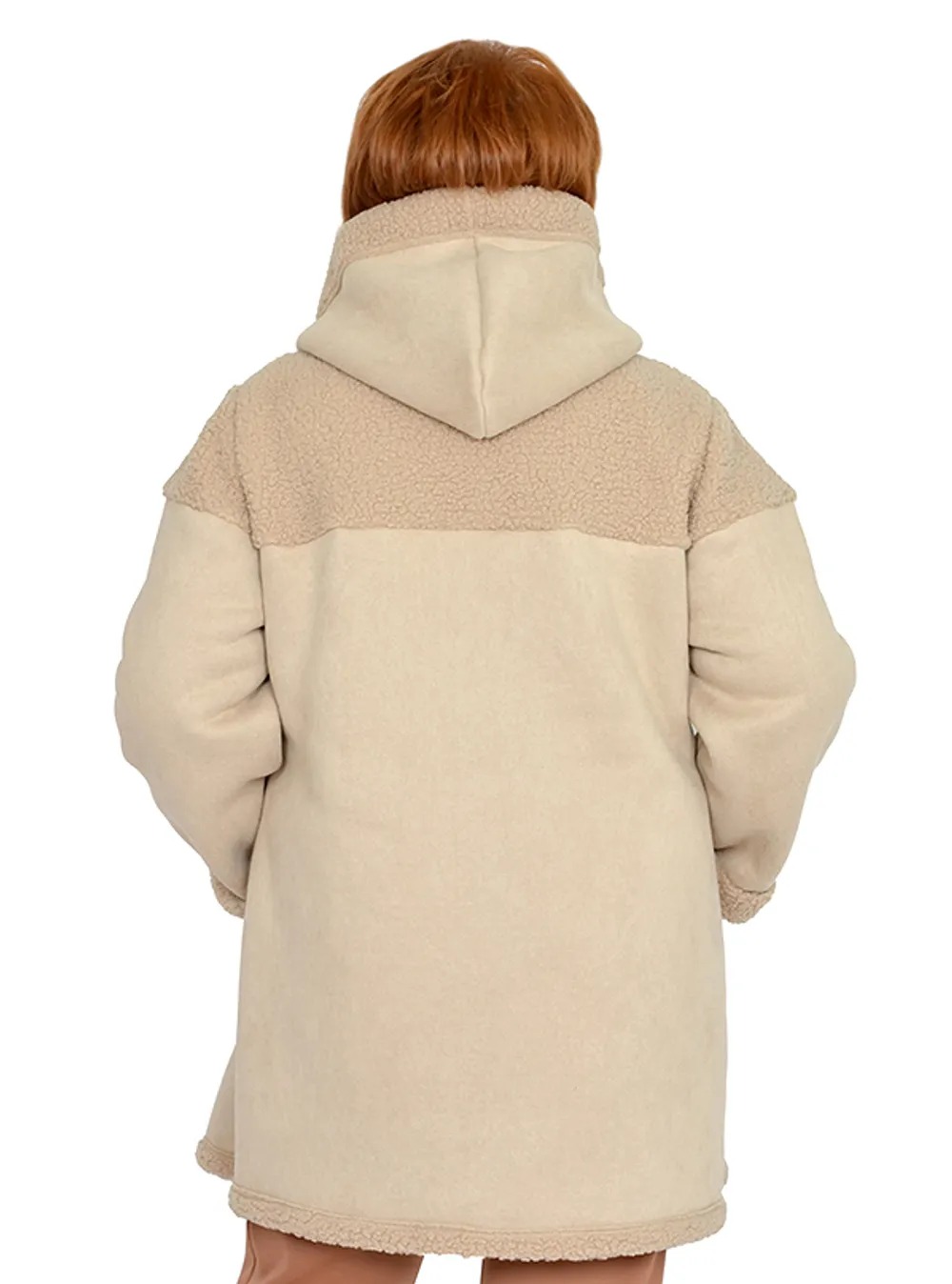 Куртка-дубленка из искусственной двухсторонней замши бежевая размеры 50-84