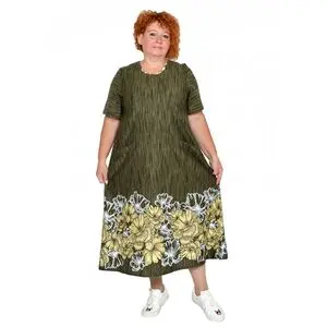 Платье из трикотажного полотна масло с напылением блеска зеленое