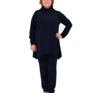 Туника с объемным воротником и фигурной линией низа из трикотажа милано