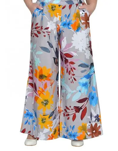 Брюки расклешенные, с карманами, пояс на широкой резинке. Ткань не тянется. Состав вискоза 65% и 35% пэ. Ткань имеет красивый, шелковистый, жатый эффект, не мнется, очень легкая и воздушная.