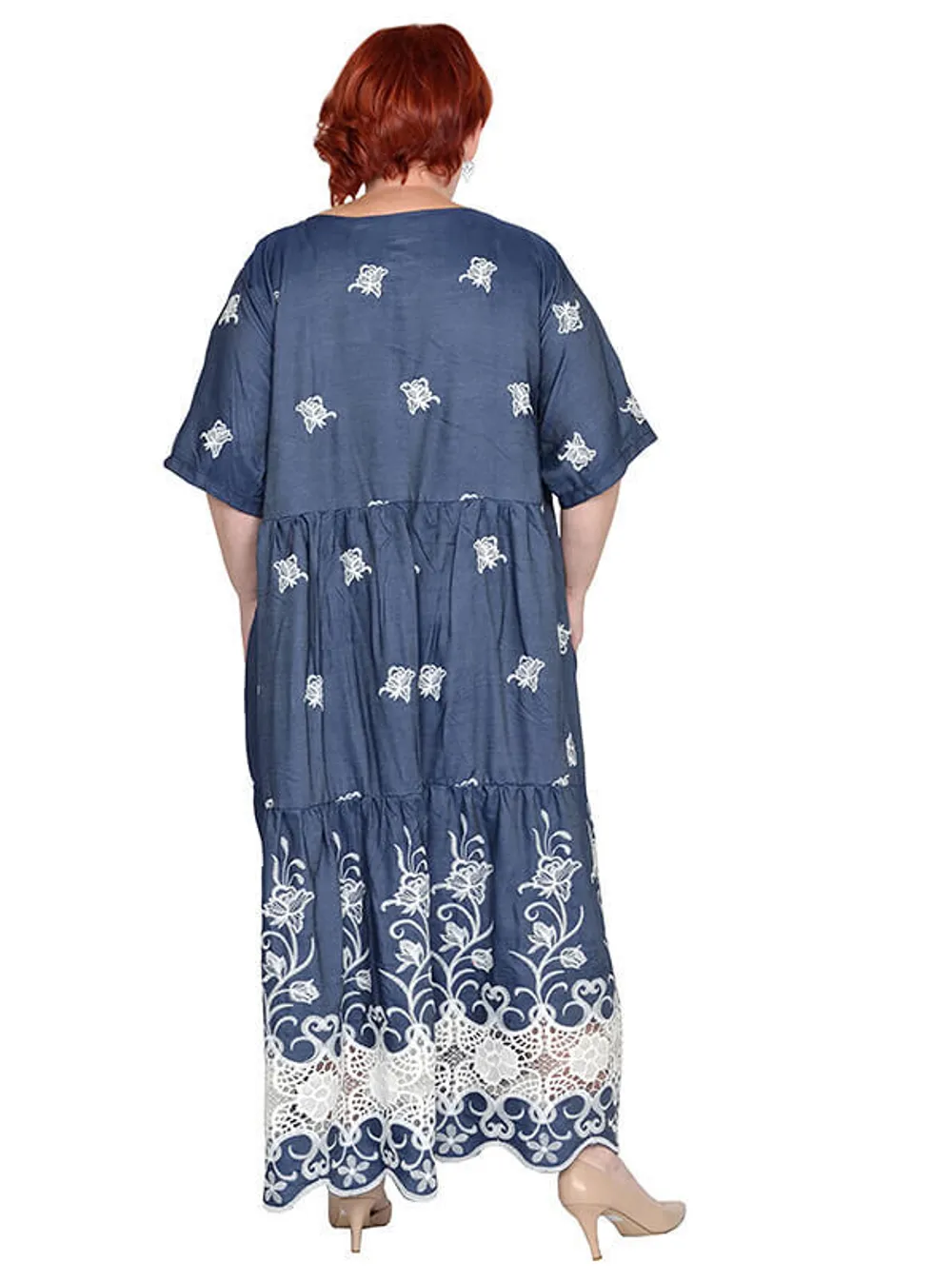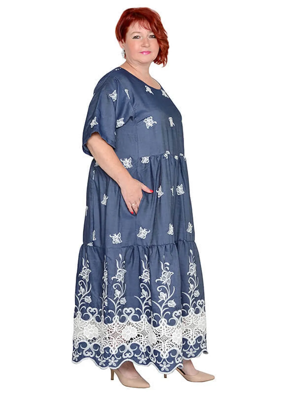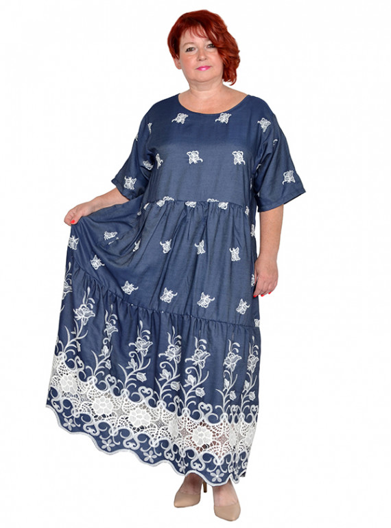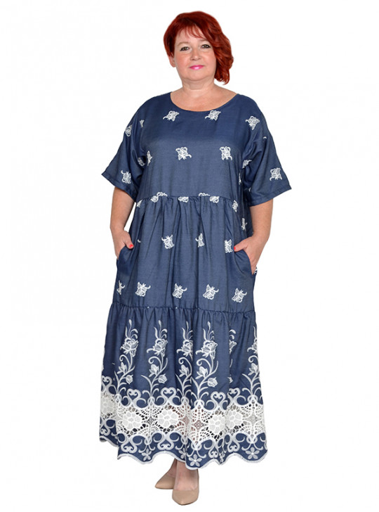 Платье в стиле бохо с карманами из облегченной джинсы коттон с вышивкой. Состав 100% хлопок.