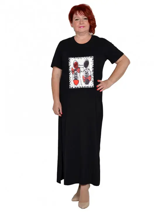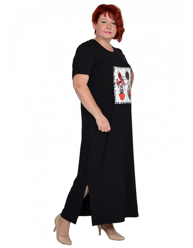 Платье с разрезами из трикотажной вискозы черное размеры 50-84