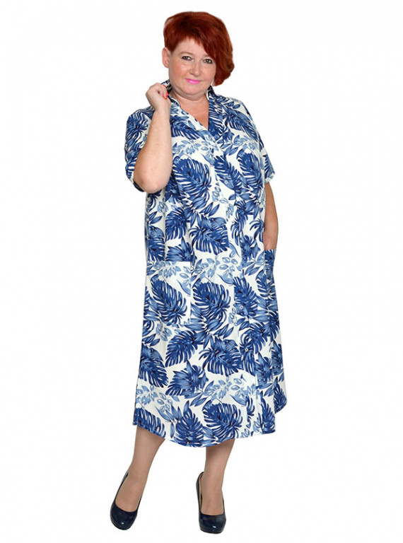 Платье-рубашка с застежкой на кнопки, с карманами и разрезами по бокам. Ткань лен 35% и 65% пэ.