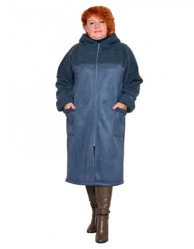 Пальто-дубленка с капюшоном из искусственной двухсторонней замши. Состав 95% пэ, 5% эластан. Ткань не мнется, приятная к телу, немного тянется, очень теплая. Изнаночная сторона барашек, верх искусственная замша. Модель с карманами, без подкладки. Сезон евро-зима. Длина 105-120 см.