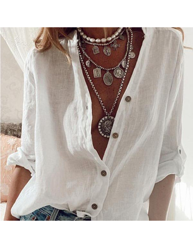 Хлопково-льняная рубашка с длинными рукавами