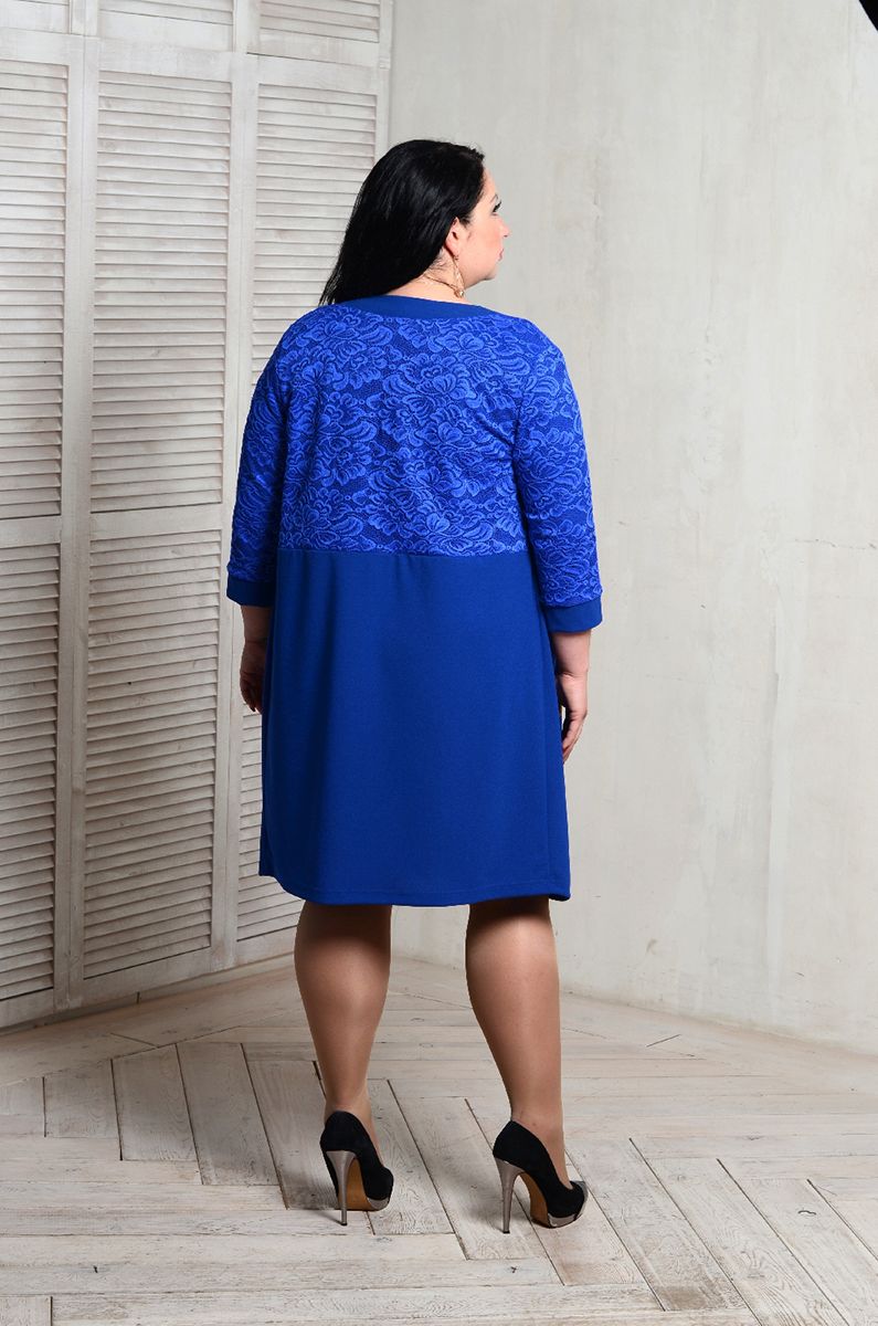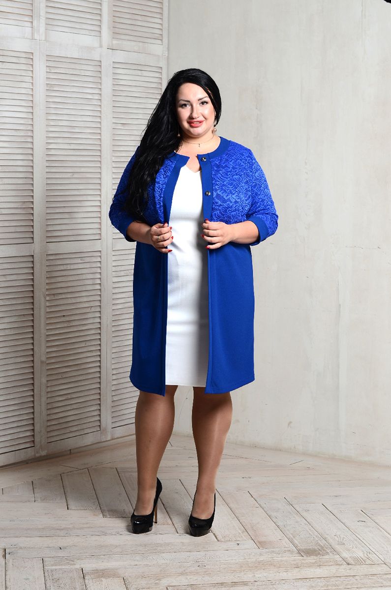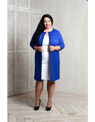 > Костюм - кардиган васильковый с кружевом и прямое васильковое платье