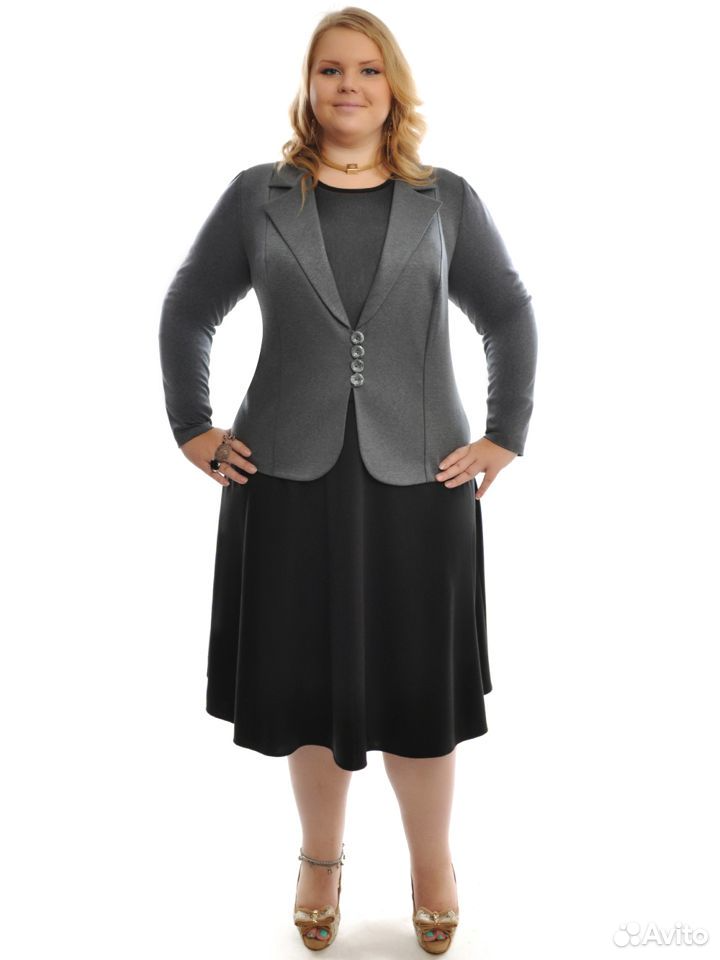 Длина пиджака около 65 см. Длина юбки около 84 см. Трикотаж.