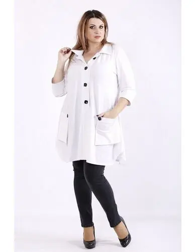 Состав: 67% полиэстер; 30% вискоза; 3% эластан. Длина по спинке около 80 см.