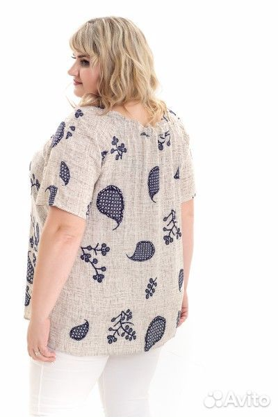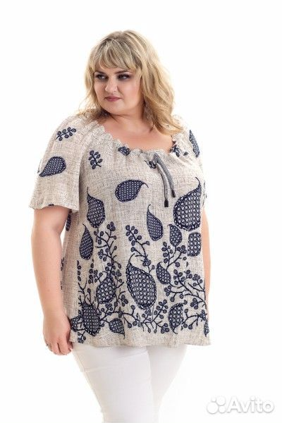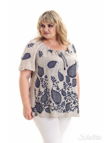 Ткань штапель, состав 50% хлопок, 50% вискоза. Легкая, летняя туника свободного силуэта. Рукав короткий . Изделие собрано у горловины на шнуровку. Ткань невесома и легка. Длина около 70 см.