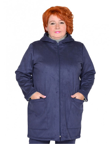 Куртка с капюшоном из трикотажного полотна «замша на флисе». Состав 95% ПЭ, 5% лайкра. Ткань очень хорошо тянется, не мнется, теплая, приятная к телу.
