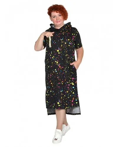 Платье с капюшоном, карманами из трикотажного полотна. Состав хлопок 100%.