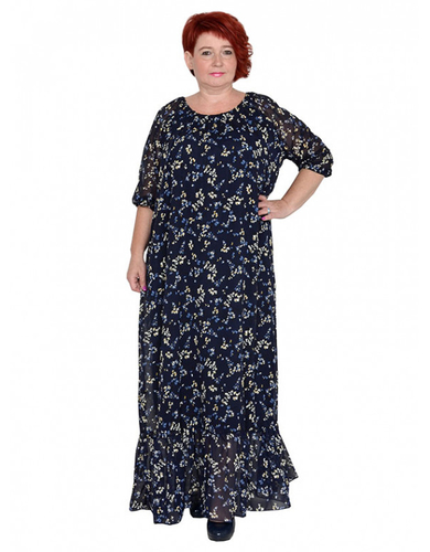 Платье из шифона с подкладкой шелк. Горловина и рукава на резинке. В комплекте пояс.