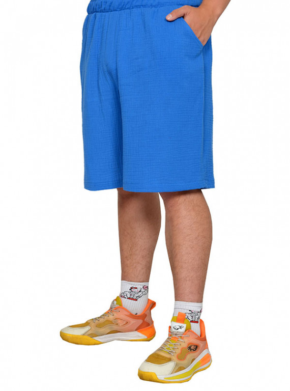 Шорты с карманами из ткани муслин. Состав хлопок 100%. Пояс на широкой резинке.