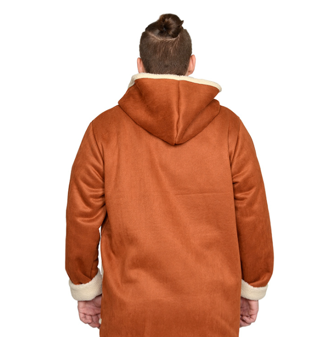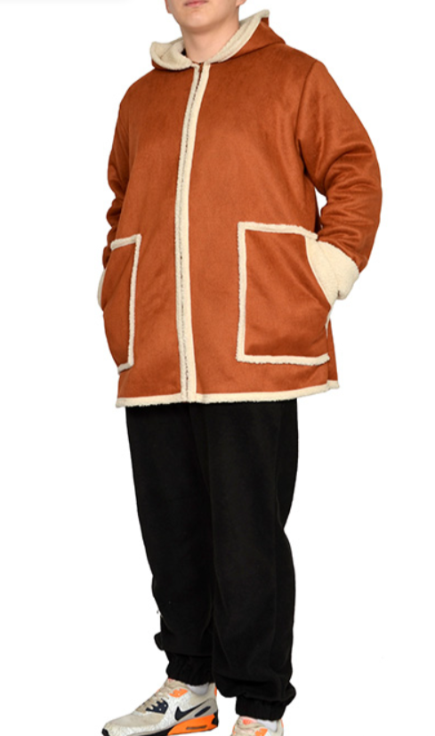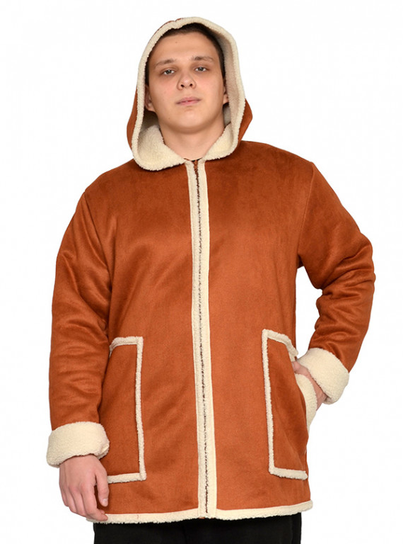 > Дубленка-куртка мужская с капюшоном из искусственной двухсторонней замши