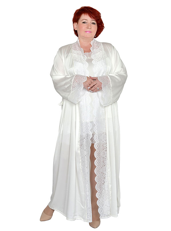 Халат из шелка с трикотажным кружевом. В комплект входит пояс.