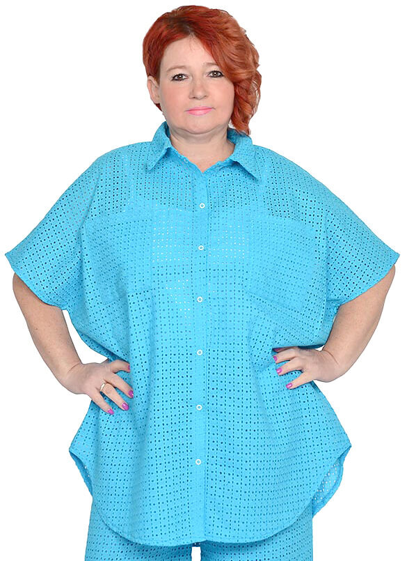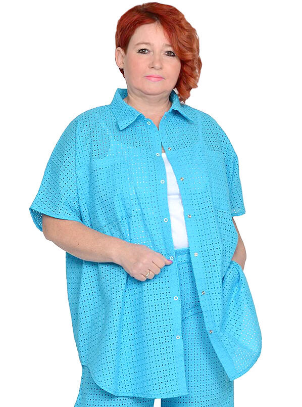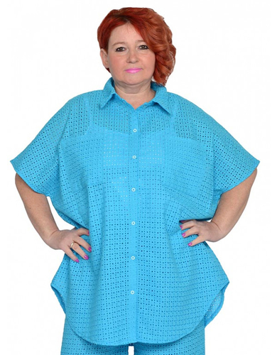 Рубашка со спущенной проймой, застежка на кнопки. Можно носить, завязывая на талии или на всю длину. Ткань батист с вышивкой, не тянется. . Состав хлопок 100%. Ткань очень приятная к телу.