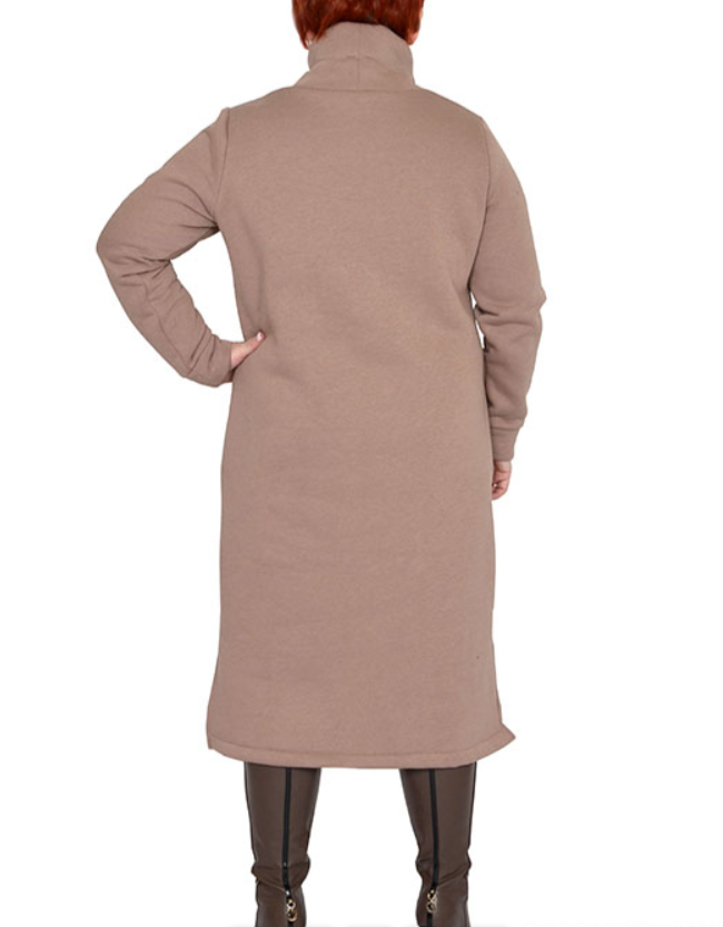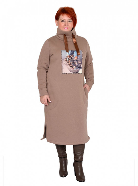 Платье из трикотажного полотна футер-трехнитка с начесом на холодную погоду. Состав хлопок 60%, ПЭ 35%,эластан 5%. Длина 105-120 см.