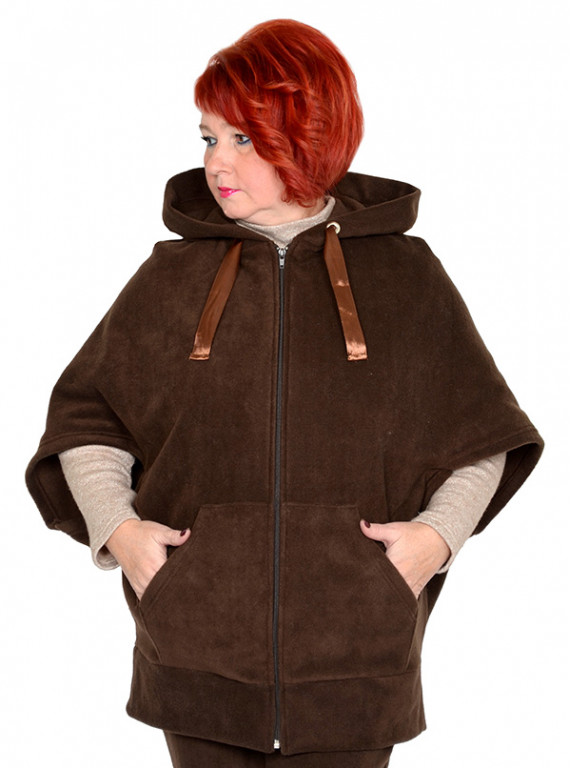Толстовка-пончо из трикотажного полотна флис - шоколад