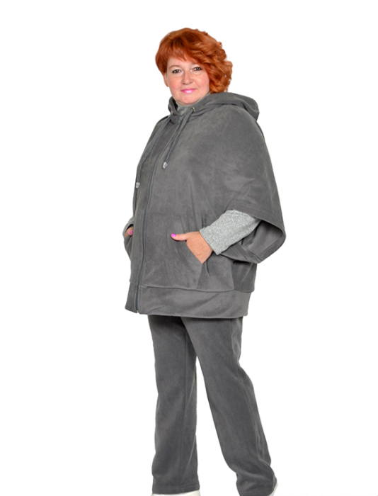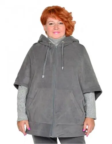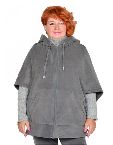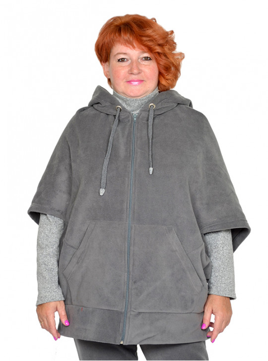 Толстовка-пончо с карманами, на молнии из трикотажного полотна флис. Состав пэ 100%.