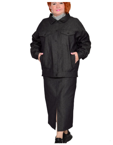 Куртка из плотной джинсовой ткани на кнопках, с карманами. Состав 65% хлопок, 35% пэ. Пояс на широкой резинке.