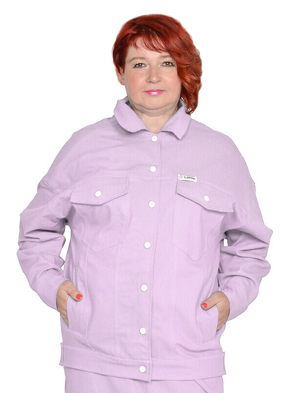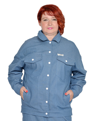 Куртка из плотной джинсовой ткани на кнопках, с карманами. Состав 65% хлопок и 35% пэ.