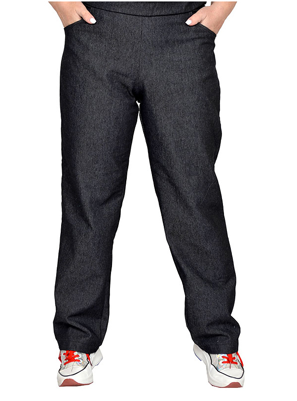 Брюки из джинсовой ткани. Ткань тянется умеренно. Состав 60% хлопок, 38% пэ, 2% эластан.