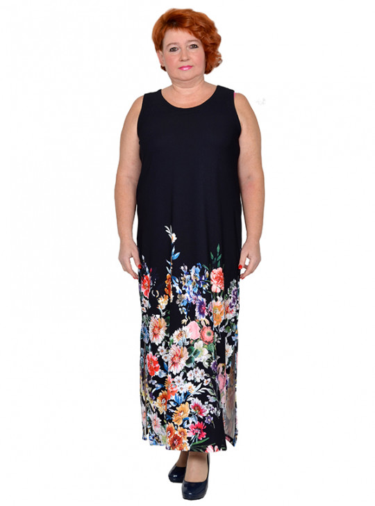 Платье-майка из трикотажного полотна с разрезами по бокам. Состав 100% полиэстер.