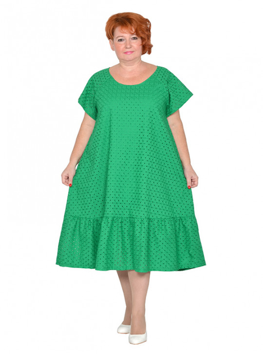Платье клешеное с оборкой из ткани батист с вышивкой с хлопковой подкладкой. Состав 100% хлопок. Длина 110-120 см.