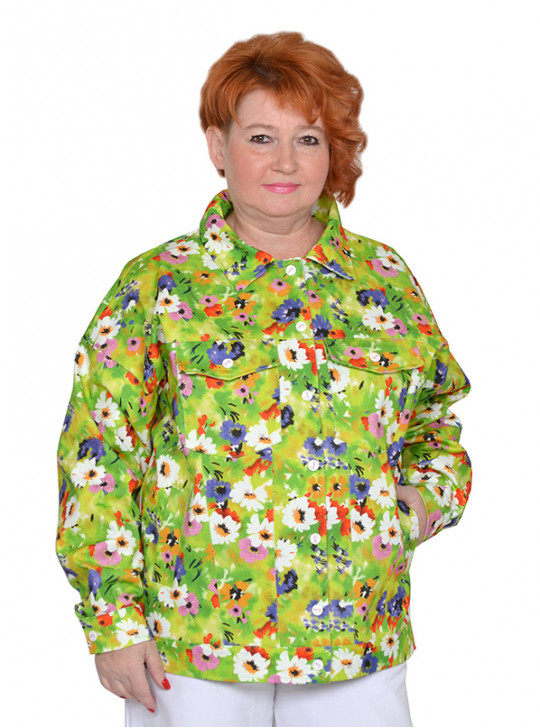 > Джинсовая куртка яркий принт
