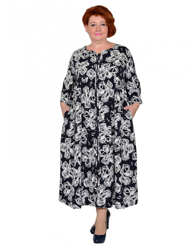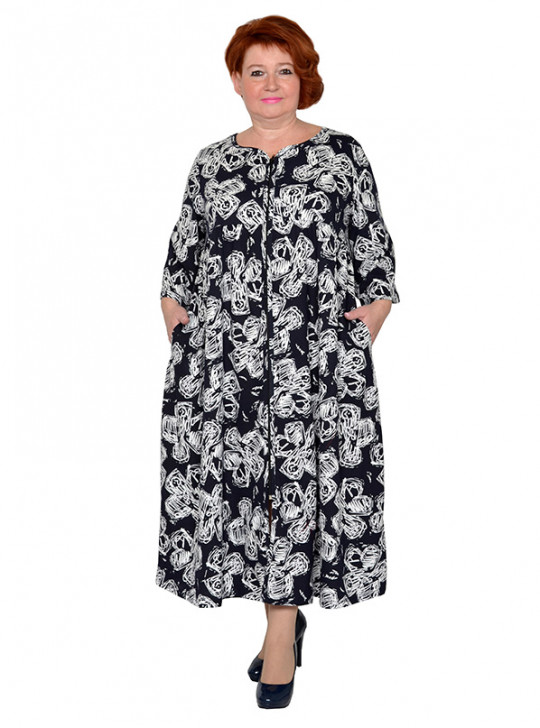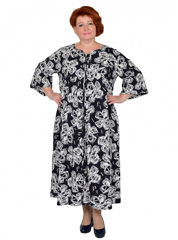 Халат расклешенный из трикотажного полотна. Состав 100% хлопок. В боковых швах карманы.