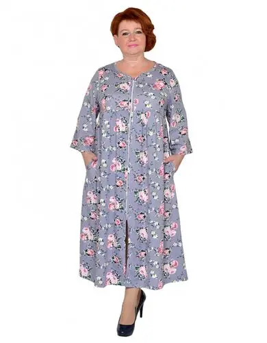 Халат расклешенный из трикотажного полотна. Состав 100% хлопок. В боковых швах карманы.