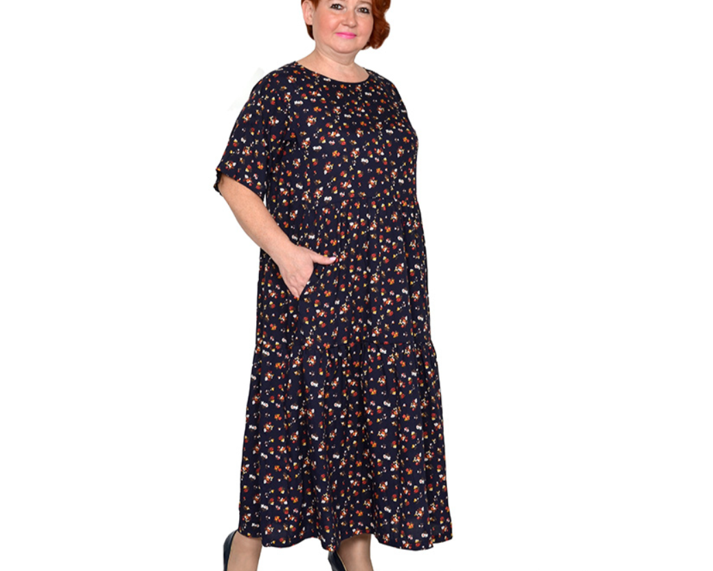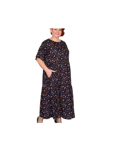 Платье в стиле бохо из штапеля. Состав 100% вискоза. Модель расклешенная, с карманами.