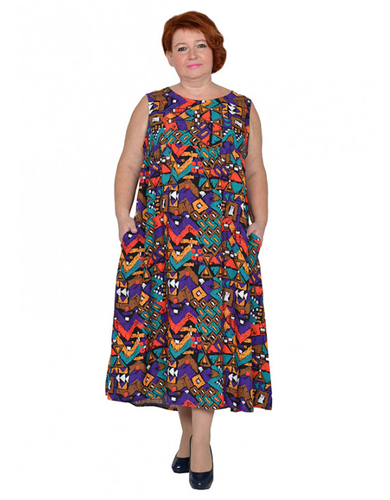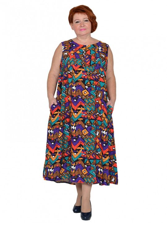 Сарафан из штапеля. Состав 100% вискоза. Модель расклешенная, с кокеткой, с карманами.