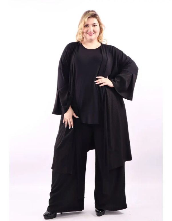 Свободные расклешенные брюки из вискозного трикотажа. Пояс - круговая широкая резинка. Состав ткани 95% вискоза, 5% эластан.