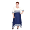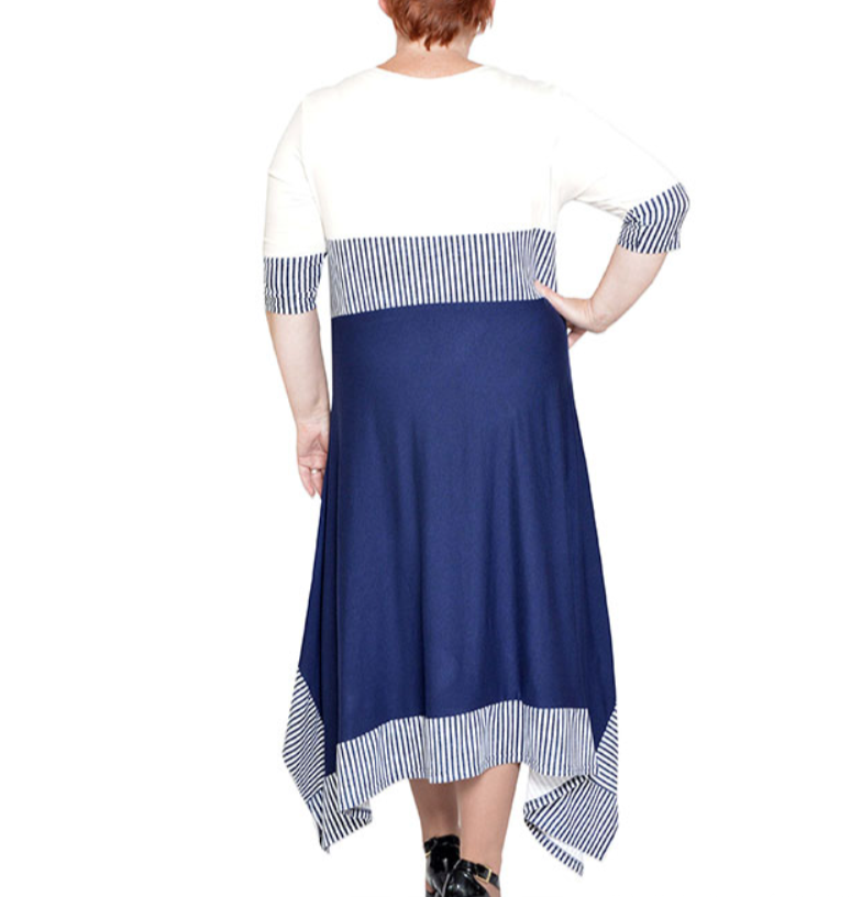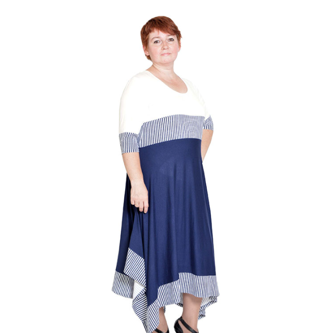 Платье из трикотажного полотна трех цветов с фигурной линией низа, рукав 3/4